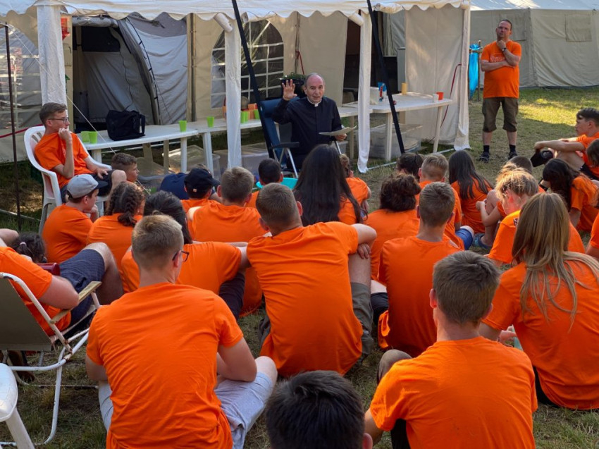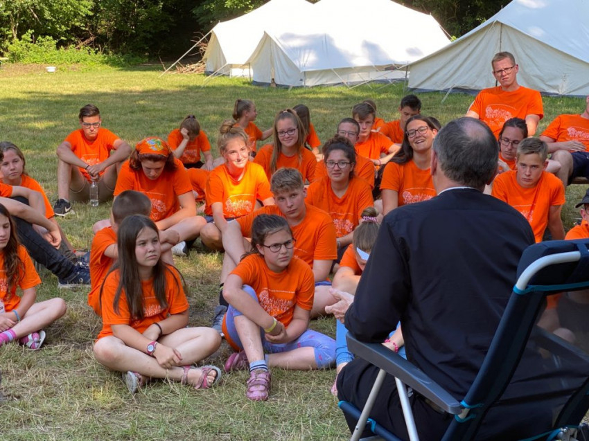 A szentmise után tartott találkozón Udvardy György érsek a fiataloknak az ő életével, szolgálatával, életszemléletével kapcsolatos kérdéseire válaszolt. A közvetlen beszélgetésben a gyerekek megismerhették a főpásztor időbeosztását, hétköznapjait, főbb feladatait is. A látogatást közös tábori vacsora zárta.