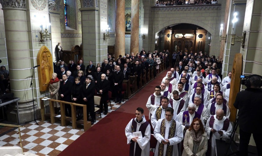 Március 24-én, szombaton délelőtt a főszékesegyházban Erdő Péter bíboros, prímás, esztergom-budapesti érsek mutatta be latin nyelven a szentmisét Veres András győri megyéspüspökkel, a Magyar Katolikus Püspöki Konferencia elnökével; Stanislaw Gadecki poznani érsekkel, a Lengyel Katolikus Püspöki Konferencia elnökével; Márfi Gyula veszprémi érsekkel, a Veszprémi Főegyházmegye papságával, valamint Lengyelországból érkezett atyákkal, köztük a lengyel elnök káplánjával. Az olvasmány és az evangélium magyarul és lengyelül hangzott el.