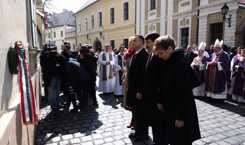 A szentmise után a főpapok és az elnöki párok a veszprémi várfokhoz vonultak, ahol a volt papi szeminárium épületén Andrzej Duda és felesége, Agata Kornhauser-Duda, valamint Áder János és felesége, Herczegh Anita közösen megkoszorúzta a Varga Béla atya emlékére állított magyar–lengyel feliratú emléktáblákat.