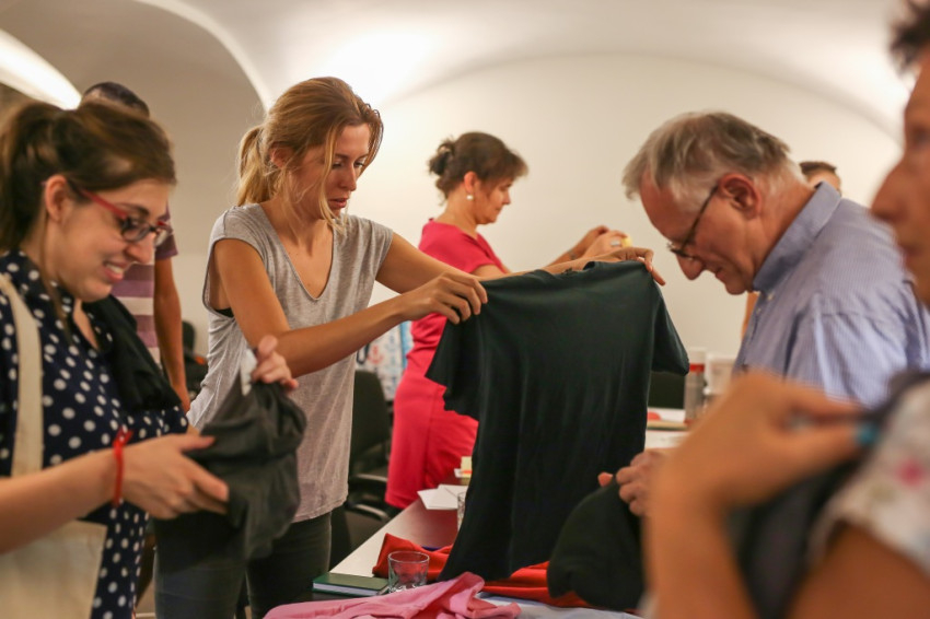 Szintén szimbolikus jelentősége van annak is, miért pont pólón és táskán jelenítik meg Szent Márton ma is aktuális üzenetét. A Verkstaden vezetője, Pintér Pálma kifejtette, a divatipar a környezetszennyezés terén megelőzte az olajipart is. Szitanyomó műhelyében éppen ezért kiemelt figyelmet fordítanak a fenntartható divatra és az újrahasznosításra, számos minta használt, de jó állapotú ruhaneműre készül. A műhely résztvevői is használt pólók, illetve új lenvászon táskák közül választhatnak. Utóbbi szintén a környezettudatosságot jelképezi, hogy ne mindig csak eldobható műanyag szatyrot használjunk.