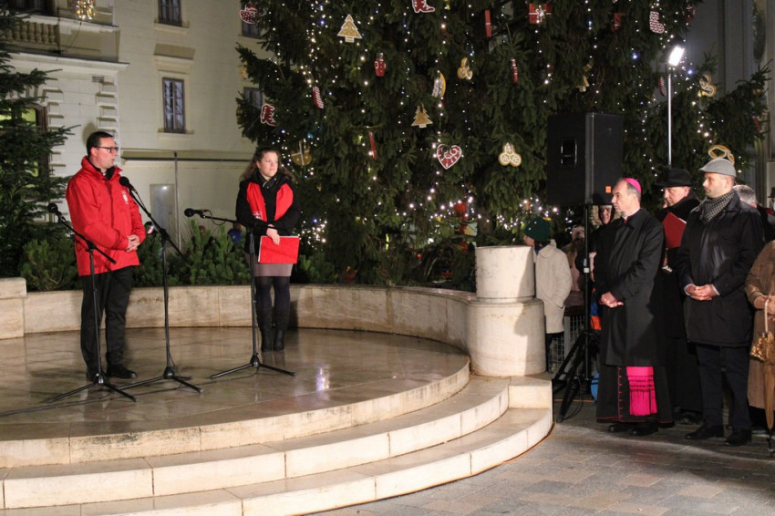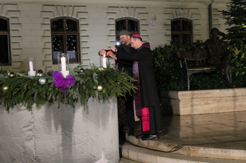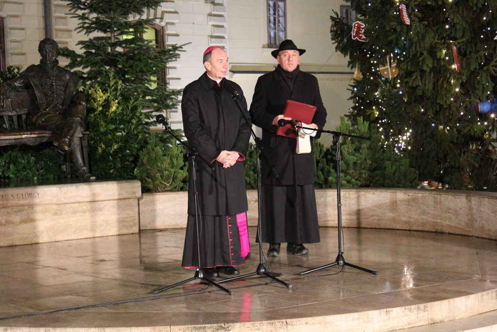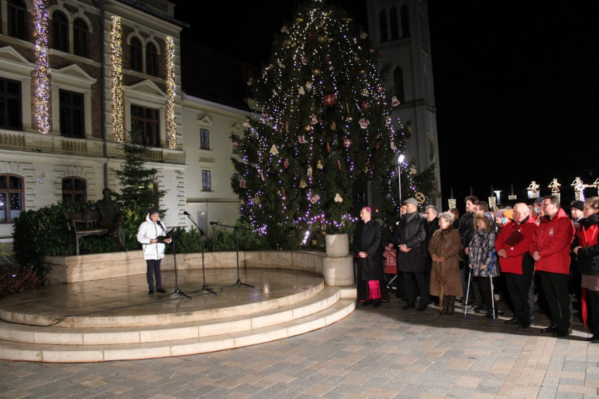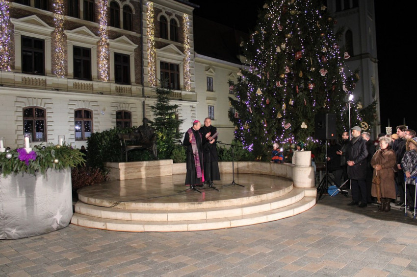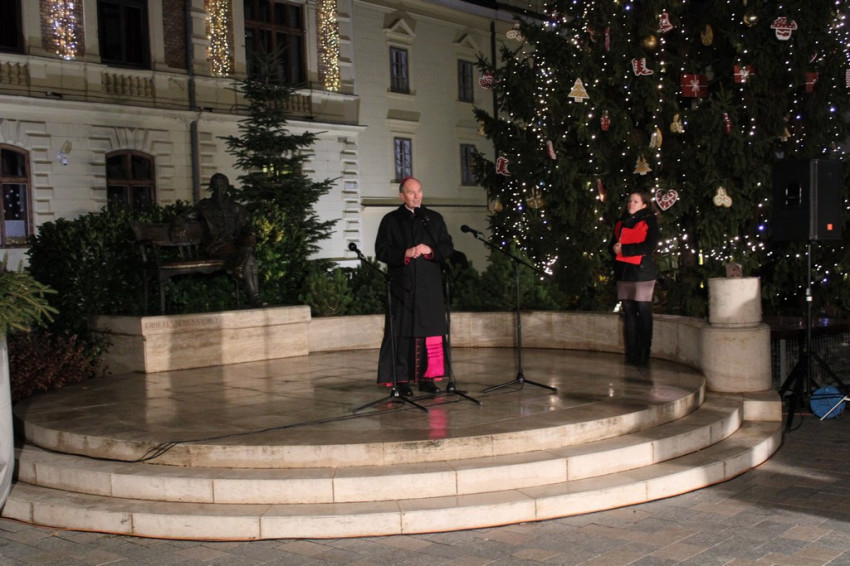 Udvardy György érsek áldást kért a jelenlévőkre, majd a második adventi gyertyát is meggyújtották a város koszorúján.
