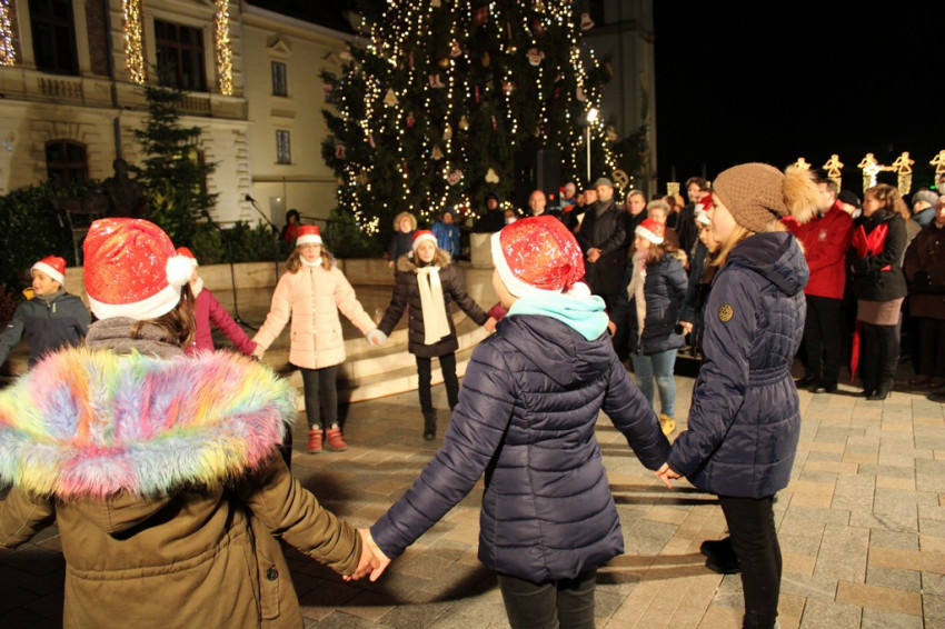 A megnyitón fellobbant a főtéren felállított adventi koszorún a második gyertyaláng is, amelyet Nagy Bálint, Keszthely város polgármestere, valamint Udvardy György veszprémi érsek együtt gyújtottak meg.
