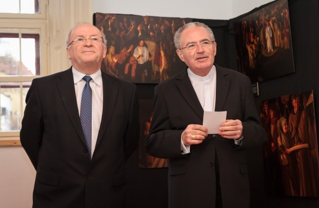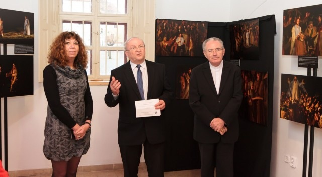 Pápai Lajos megyéspüspök megnyitóbeszédében egy hittanos anekdotát felidézve mindannyiunk személyes megváltásáról elmélkedett. Jézus Krisztus keresztáldozata és feltámadása ugyanis közel hozható és közel is hozandó a mai kor emberéhez. Miközben a keresztényeket szerte a világon üldözik (Európában a relativitás diktatúrája által, a Közel-Keleten pedig fizikailag, véres következményekkel), a templomainkban énekelt passió és e kiállítás képei hozzásegíthetnek minket, hogy saját áldozatainkat Krisztus feltámadásának fényében szemlélhessük.