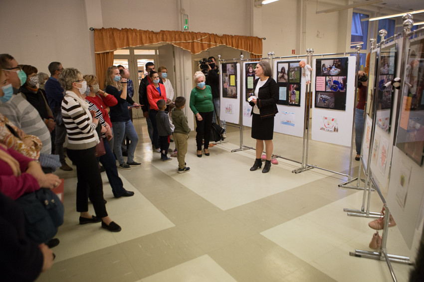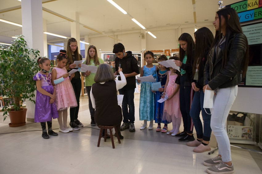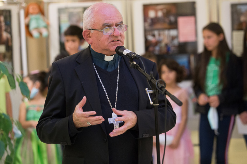 A főpásztor szavai után a támogatott családok gyermekei Kovács Magda meséjét adták elő a bűvös erejű kőről, majd az alapítvány vezetője tartott tárlatvezetést.