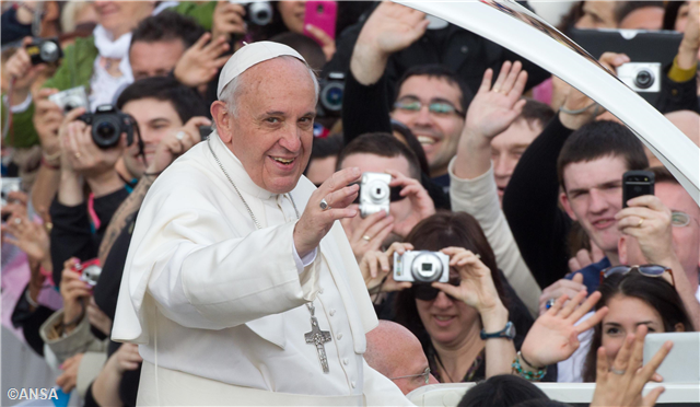 Ferenc pápa a sokadalomban észrevette egy barátját, akit fölvett nyitott autójára. Aztán megállította a pápamobilt és leszállt, hogy üdvözöljön egy olasz ifjúsági csoportot és megáldja néhány honfitársát.