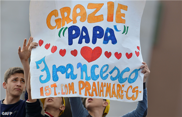 A tömegből egyszercsak fölhangzott egy kiáltás: „Francesco, sei unico!” „Ferenc, nincs még egy olyan, mint te!” Mire a Szentatya így válaszolt a fiatal zarándoknak: „Te is egyedi vagy, senki nincs hozzád hasonló!”