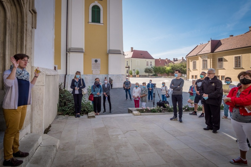 A székesegyházban Smohay András ismertette a templomépület belső ikonográfiai programját, és röviden tájékoztatott a renoválási folyamatról: 2014-ben megsérült a székesegyház északi oldala, jelezve, hogy komoly statikai problémák vannak a tetőzettel. Ennek javítása, illetve a homlokzat rendbetétele 2016-ig megtörtént. Már ekkor elkezdték tervezni a most zajló restaurálási munkát.