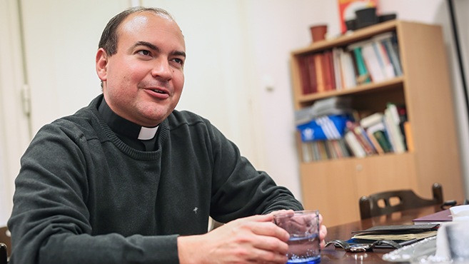 „Nagyon szívesen vagyok emberek között, ezzel telnek a napjaim, és öröm számomra, hogy azt csinálhatom, amit szeretek. Oda kell figyelnem arra, hogy jusson időm a töltekezésre, és ne égessem két végén a gyertyát. Ritkán vagyok egyedül. Ezért fontos, hogy időnként elvonuljak és elcsendesedjek. Ha a pap nem ügyel kellőképpen a lelkiéletére, ha nincs mögötte istentapasztalat, akkor egy idő után kiüresednek a prédikációi. A plébánián mindennap tartunk szentségimádást. Ezek az alkalmak, amelyeken én is ott vagyok a hívekkel, keretet adnak a lelki elmélyülésnek, és segítenek abban is, hogy jól osszam be az időmet. Emellett évente járok lelkigyakorlatra, és lelkivezetőhöz is gyakran. Fontosak számomra a papi közösségek és a kikapcsolódás is: a barátok, a színház, az uszoda, a kirándulás – egyedül és társaságban. Édesapámmal a kéktúra útvonalait járjuk, a regnumi barátaimmal pedig az ultrabalatonra készülünk. Úgy érzem, a helyemen vagyok.”