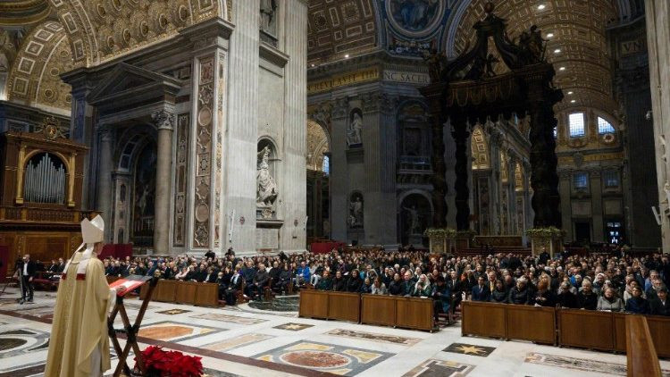 Homíliája végén Gänswein érsek emlékeztetett, hogy az Eucharisztiában mindig jelen van a karácsony titka. Az Eucharisztiában az Egyház Isten családjaként épül, az Eucharisztiában egyesülünk minden hívővel, beleértve a szenteket és elhunytainkat is. Az Eucharisztiában egységben maradunk XVI. Benedekkel is, és őszintén hálásak vagyunk Istennek élete ajándékáért, tanításának gazdagságáért, teológiájának mélységéért és azért a ragyogó példáért, amelyet ránk hagyott ez az „egyszerű és alázatos munkás az Úr szőlőjében” – zárta homíliáját.