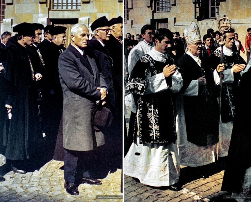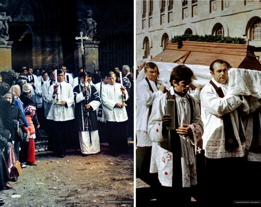 A gyászmisét a székesegyházban tartották, annak végeztével kihozták a koporsót a főbejáraton a templomból, és levitték az alatta található kriptába, amelynek a bejárata a templomon kívül, a szentély mögött van. Eközben készítette Gazsi bácsi a képeit, amire így emlékszik vissza: „Megmondom őszintén, lehet, hogy én voltam naiv. Én nem nagyon láttam senkit sem akkor fényképezni. Utólag tudtam meg, hogy reverenda alól egy-egy képet azért csak csináltak. Én csak úgy kiálltam az út kellős közepére, és onnan fényképeztem. Színes diára. Nem tudták elképzelni a szekusok, hogy van valaki, aki annyira merész, hogy kiáll oda. Talán a helyiek azt hitték, hogy a központból küldtek valakit, a központiak pedig azt gondolhatták, hogy egy helyi” – magyarázza a történteket Gazsi bácsi, aki a tekercs filmet végül elküldte Magyarországra a nagybátyjának, hogy ott hívják elő.