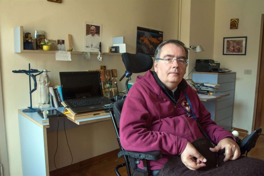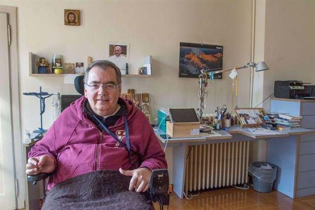 – A technológia segít: használok számítógépet, mobiltelefont, tabletet. A közösségi oldalakat nem, azok nem nekem valók. Van két ápolóm, akik 24 órában gondoskodnak rólam. A plébániai hívek létrehoztak egy szervezetet „Giorgio atya barátai” néven, és mindenben segítenek. A gyakorlati dolgokat meg lehet oldani: van egy lift, ami a lakásból levisz a templomba, kialakítottak rámpákat is. A barátaimtól kaptam egy olyan autót, amelybe egy rámpán keresztül be tudok szállni a kerekesszékemmel. A szentmisén felváltva két áldoztató lapozza a misekönyvet, kezembe adja a paténát és a kelyhet, áldoztatnak.