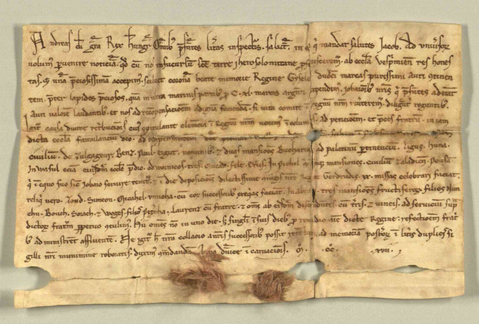 II. András király (1205–1235) megörökölte apja, III. Béla (1172–1196) fogadalmát, mely szerint a kereszténység védelmében személyesen vezet hadjáratot a Szentföldre. A sorrendben ötödik keresztes háborút III. Ince pápa hirdette meg 1213-ban, a hadjárat 1217 és 1221 között zajlott. A magyar uralkodó kezdetben szárazföldi úton kívánt eljutni a Közel-Keletre, azonban végül a gyorsabb tengeri utat választotta, s az ország közepéről indulva Székesfehérvár és Zágráb érintésével 1217. augusztus 23-án érkezett meg Spalatóba (ma Split). A hadjárat költségeinek alapját a lateráni zsinat rendelkezése értelmében a beszedett tizedek huszada, illetve különböző itáliai bankházaktól felvett hitelek jelentették.