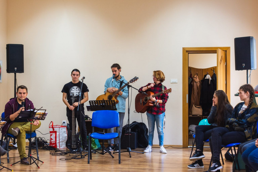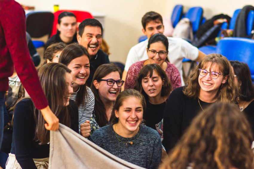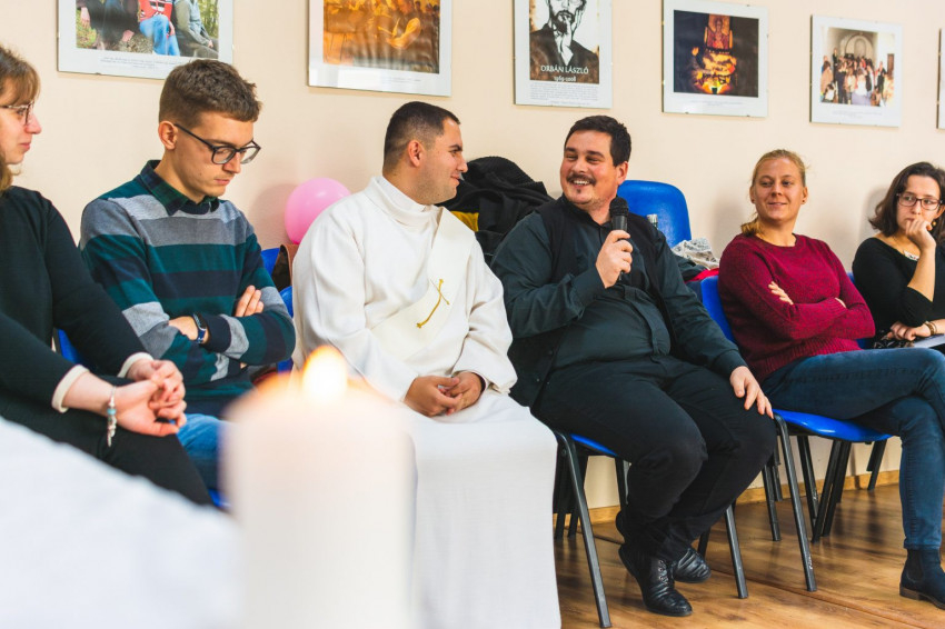 Miután Jánossi Imre egyetemi lelkész köszöntött minket, elindultunk a megismerés útján. Játszodtunk, így könnyebb volt megtanulni egymás nevét, megosztani magunkból egy-egy kívülről nem látható vonást is. Ezeknek köszönhetően már tudjuk, hogy nincs az a lufi, amelyiket ne tudna egy összetartó csapat előbb vagy utóbb kilyukasztani; hogy mennyire fontos az egymásra való figyelés; ha beszéd nélkül kell tudassuk az életkorunkat, hogy az egyetemisták a legkreatívabbak a konyhában; a legkülönbözőbb ételek is tudnak passzolni, ha éhes az ember; hogy milyen vagány dolgok tudnak születni, ha ilyen csodás emberek kerülnek egy helyre.