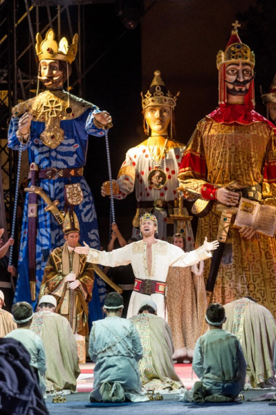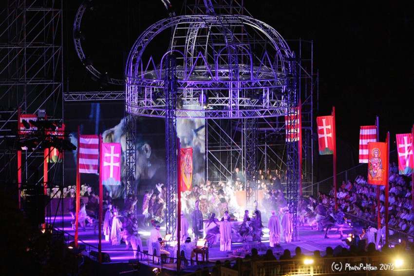 – A Nagyboldogasszony-bazilika romjai fölé emelt hatalmas színpadon 2013-ban rendeztük meg először a szertartásjátékokat, amelyek azóta az augusztus 20-át megelőző hét rendszeres programjaivá váltak. Amikor belefogtunk ebbe az óriási vállalkozásba, három törekvés vezérelt minket: rekonstruálni a koronázás ősi, középkori rítusát, a színház eszközeivel megeleveníteni az adott uralkodót és korát, a nézőkben pedig felkelteni a hajdani koronázótemplom virtuális képzetét. Ahogy öt évvel ezelőtt fogalmaztam: megpróbáljuk évről évre felépíteni azt a lelkekben. Összefoglalva tehát a koronázási játékok a ceremóniáról és a liturgiáról, a király személyének bemutatásáról, valamint a Nagyboldogasszony-bazilika szakrális-szellemi centrumának megidézéséről szólnak. Szent Istvánnal kezdtük, Szent Lászlóval folytattuk, őket pedig Könyves Kálmán és Vak Béla követte.