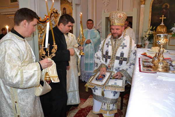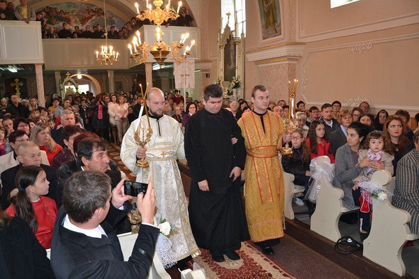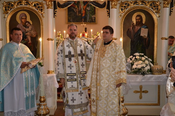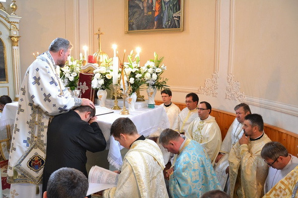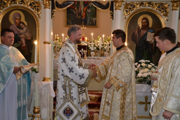 A Szent Liturgián a jelöltet két diakónustársa vezette körbe háromszor az oltár körül. A papság és a hívek a „Dicsőült szent vértanúk…” tropárt énekelve, térden állva könyörögtek a szentelésen. A szentelendő is letérdelt, homlokával az oltárra borult, a püspök pedig omoforjával befödve fejét diakónussá szentelte őt. Ezt követte a diakónusi liturgikus viseletbe történő öltöztetés. Az ünnepségre érkezett számos vendég kispap énekkart alkotva kántorizált, a római katolikus és görögkatolikus áldozópapok s a hívek együtt énekelték a megyéspüspök intonálására az axioszt.