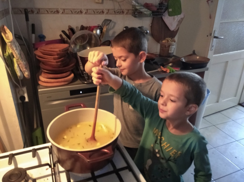 Grétiék nagyon ügyelnek az egészséges életmódra, szép nagy kertjükben megterem a saláta, a hagyma, a paradicsom és mindenféle más zöldségek. A fiúk kívülről fújják a gyógy- és fűszernövényeket is. A főzés közös öröm: amikor a három nagyobb iskolában és óvodában van, csak a legkisebb kuktáskodik, de ha megjönnek, szívesen kapcsolódnak be a többiek is.
