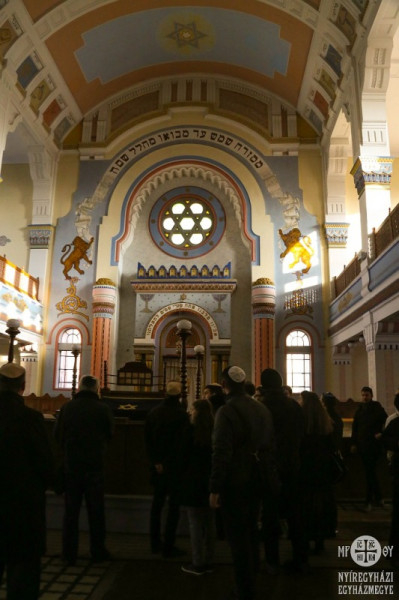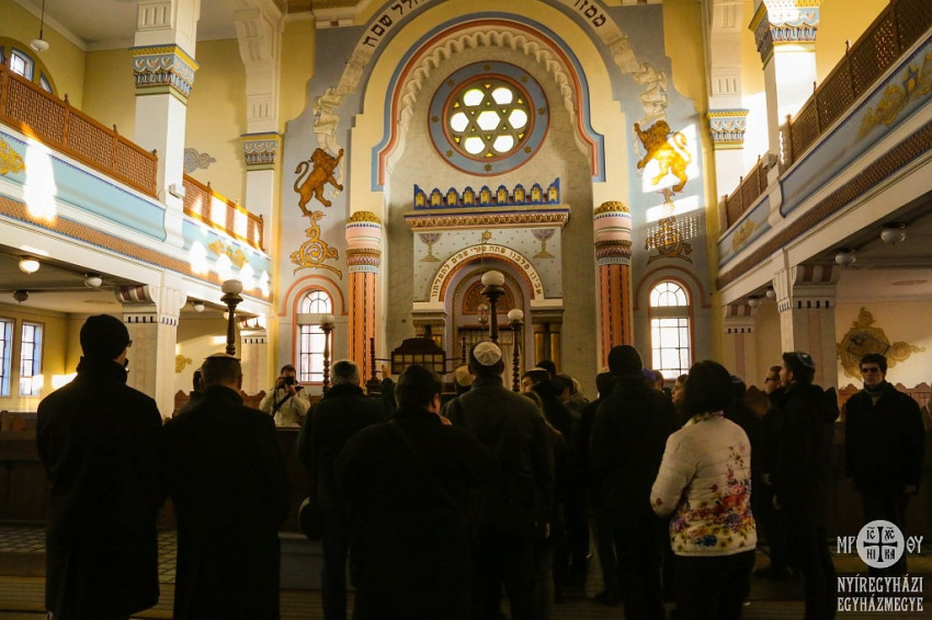 A vendégeket – akiket elkísért Baracsi Endre, a megyei közgyűlés alelnöke is – Ungvári Istvánné Klein Éva, a Nyíregyházi Zsidó Hitközség elnöke köszöntötte, majd a zsinagógát és a helyi hitközség szokásait és működését Somos Péter hitéleti vezető mutatta be.