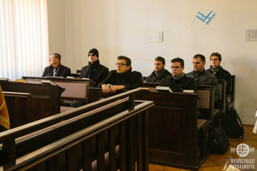A zsinagóga megtekintése után az imateremben a két egyház tagjai közösen imádkozták el az egyik zsoltárt: egy főiskolai hallgató magyarul olvasta a zsoltár sorait, Somos Péter pedig héber nyelven ismételte az imát.