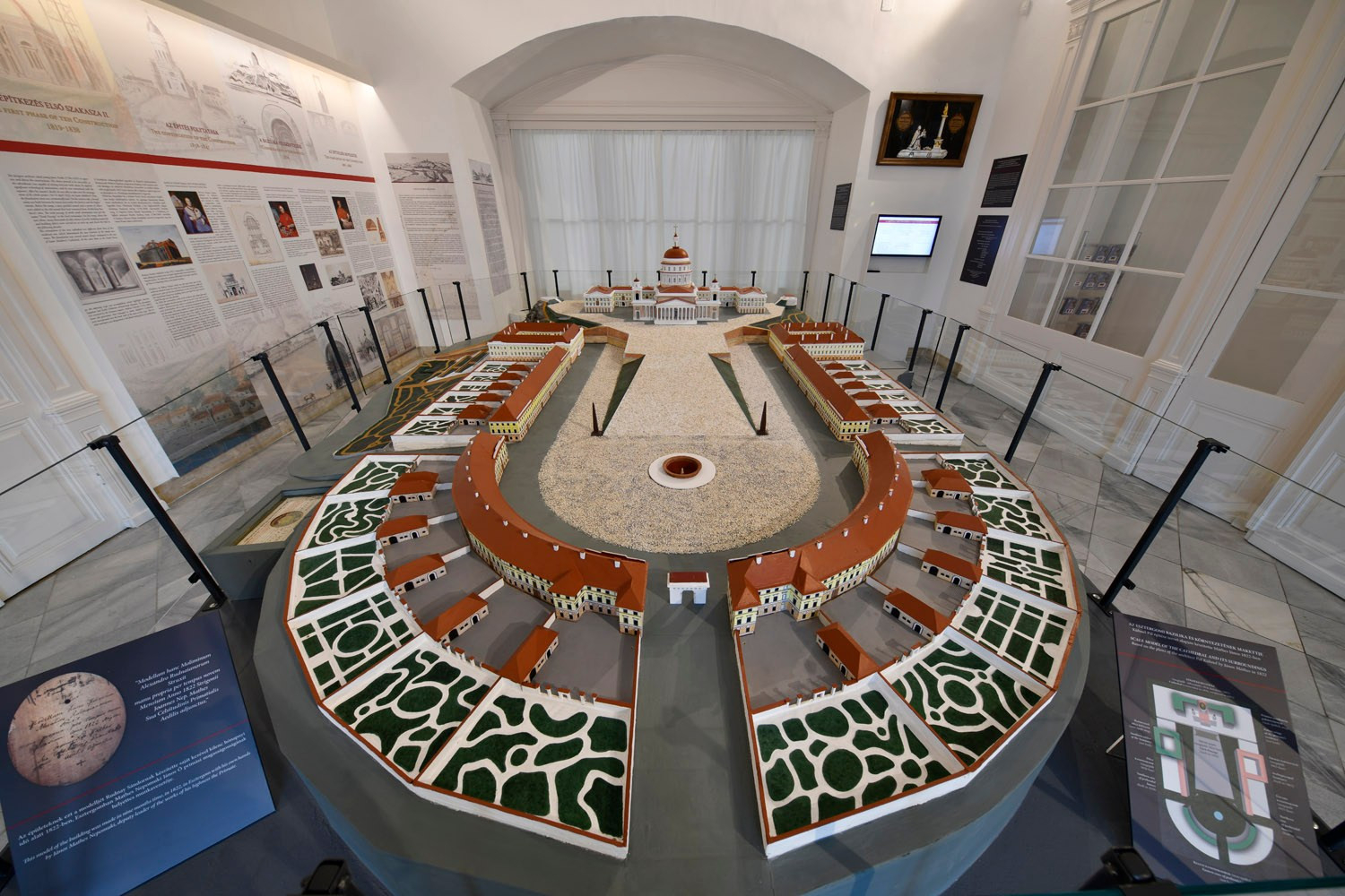 A kiállításon minderről részletes tájékoztatást olvashatunk a tablókon (angol, szlovák, latin nyelven is), de az idelátogató figyelmét elsősorban a tárlat leglátványosabb darabja, a középen álló grandiózus makett köti le, melyet 1822-ben Mathes János helyettes építésvezető készített kilenc hónap alatt, „nagy gonddal és szeretettel” Kühnel Pál és Packh János nagyszabású tervei alapján.