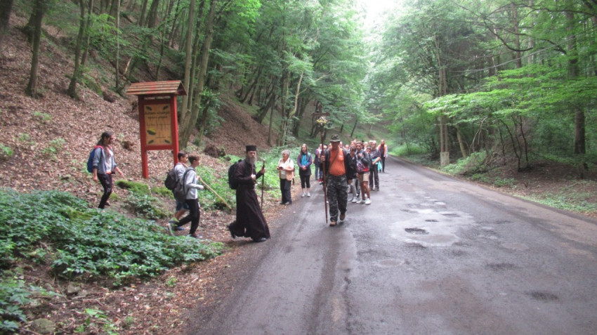 A zarándokok az Aranyosi-völgy bejáratánál pihentek meg először, majd a természeti szépségekben gazdag völgyön keresztül folytatták útjukat. Ezután csendes szakasz következett az Erdész-forrás pihenőnél elköltött ebédig.