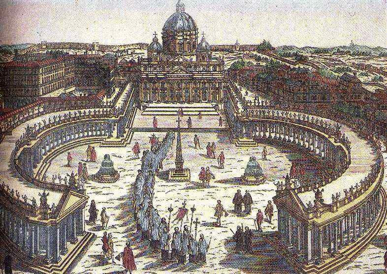 Róma, Szent Péter tér, színezett metszet, 18. század eleje