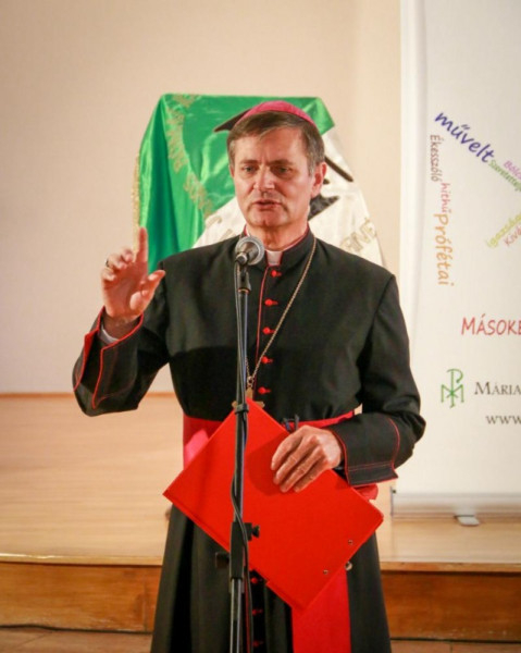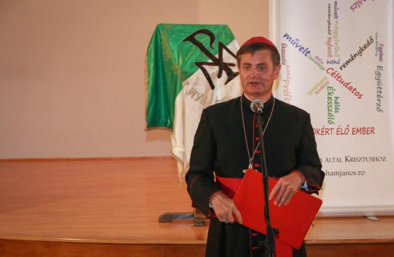 Schönberger Jenő megyéspüspök beszédében az intézmény keresztény szellemiségét emelte ki. Mint mondta, ez betölti az iskolát, köszönhetően a jó tanároknak, a spirituális atyáknak. „Nagyon fontos a tudás, de nevelni is akarunk: szép életre, jóra. A tanárok úgy élnek, hogy az életpéldájuk által is nevelnek. A diákok tudását pedig az eredmények bizonyítják. Most három szaklaborral bővül az iskolánk. Remélem, nemcsak »okostáblák« lesznek ezekben a laborokban, hanem okos diákok is, akik jól használják majd a technikát maguk gyarapítására. Az eszközökre azért van szükség, hogy általuk többek, jobbak legyenek a diákok, és még inkább beépítsék a szépet és a jót az életükbe” – fogalmazott a püspök, és megköszönte a magyar kormány támogatását.