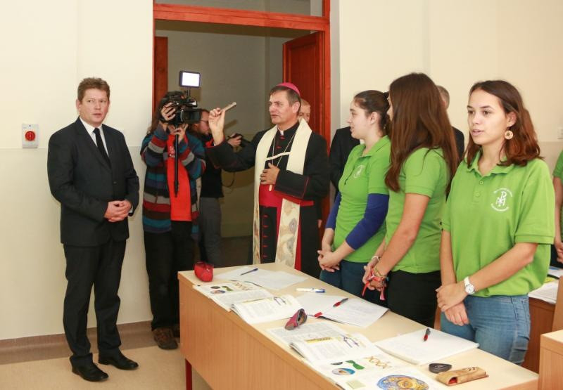 Ádámkó István igazgató úgy fogalmazott: „Az elmúlt 25 évet folyamatos építés, építkezés kísérte. Tevékenységeink megfelelő keretét a jó tanulási környezet biztosítja, ezért is olyan kiemelkedő az építkezéseink sorában a mai alkalom: a három, korszerűen kialakított, interaktív táblákkal, kivetítőkkel, interaktív táblagépkészlettel, hangfalakkal, hangosító berendezésekkel felszerelt szaktanterem átadása. Nem túlzás állítani, hogy az iskola vezetőségének, a tantestületnek, a diákoknak és a szülői közösségünknek régi álma válik valóra most, amikor a püspök megáldja és használatba vesszük az új, belső iskolai tereket: a fizika-, a kémia-biológia-, valamint az idegen nyelvi szaktantermet.”