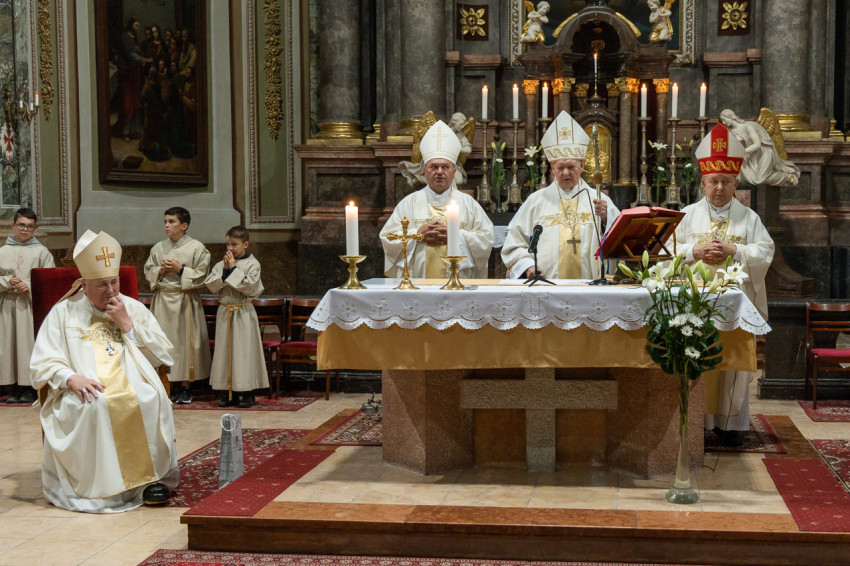 Nehéz korban élünk, de nem szabad elcsüggedni. Erre biztat minket a mai nap ünnepe. Testében az ember meg tud öregedni, de lelkében meg tud fiatalodni. Azt kívánom, hogy megfáradt testtel, de fölemelt lélekkel folytassátok az utat” – zárta a jubiláns püspökökhöz intézett beszédét Bábel Balázs kalocsa-kecskeméti érsek.