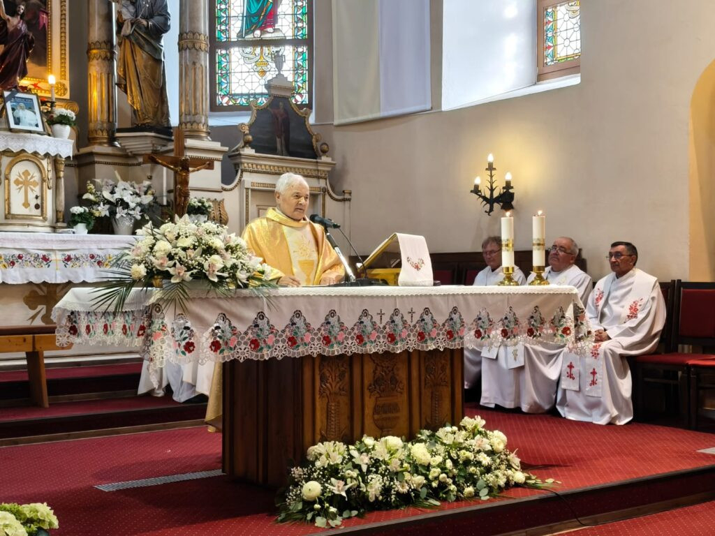 A szentmise elején Bálint Emil felcsiki főesperes-plébános köszöntötte az ünnepeltet, és megköszönve a felcsíki kerületben végzett aktív helyettesítő szolgálatát, a sok gyóntatást, valamint tolmácsolta számára Kovács Gergely gyulafehérvári érsek üdvözletét. A Mária Rádió közvetítése révén a gyémántmisés előző szolgálati helyein, Kapnikbányán, a Zsil völgyi településeken, és a Felvidék egyéb településein is figyelemmel kísérhették a hívek az eseményt és bekapcsolódhattak a szentmisébe.