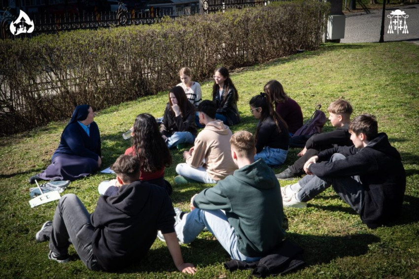 Különleges volt maga az ebéd is, hiszen a fiatalok önfeledten beszélgettek, nevettek, egy fa árnyékában ülve. Nem széken egy asztal mellett, hanem Isten karjaiban, a fűben, a virágok között.