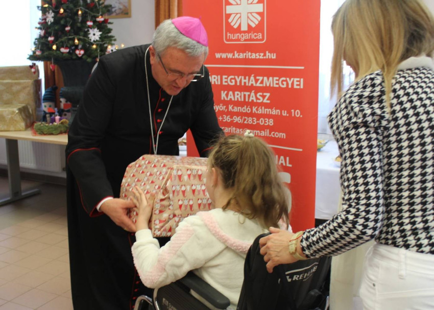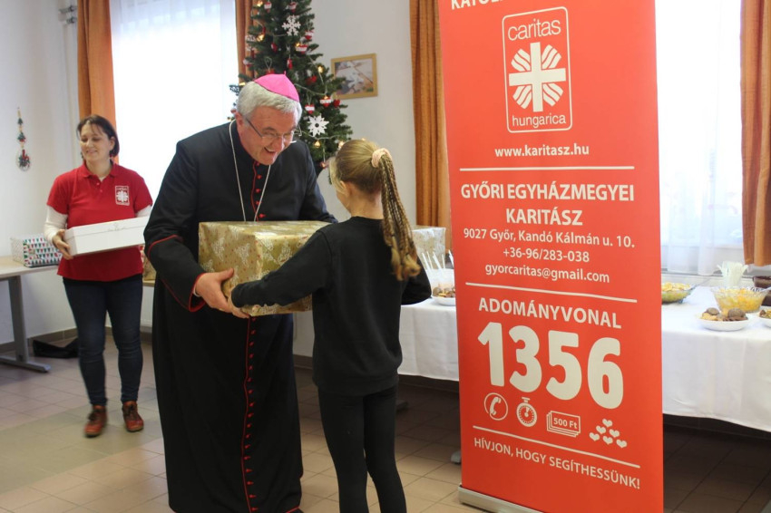 Veres András győri megyéspüspök a megjelent gyerekekhez szólt, akikkel közösen felidézte a közelgő ünnep lényegét, majd megénekeltette őket. Az ajándékok megáldása után azokat egyenként átadták a gyerekeknek, majd szeretetvendégség zárta a programot.