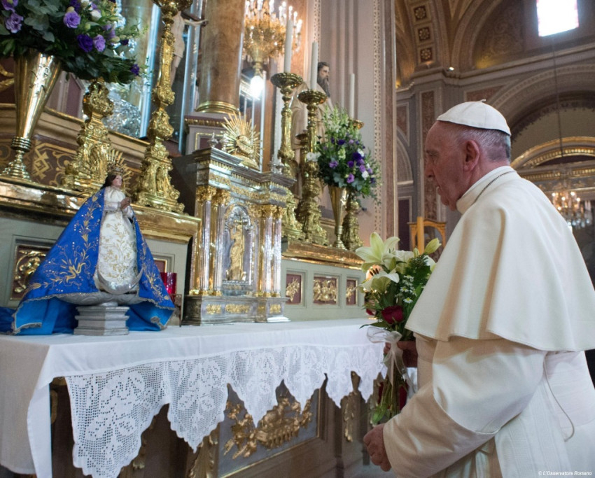 A Szentatya imádkozott a boldog szobra előtt, majd megáldotta a fiatalokból álló kórus tagjait. Elismerését fejezte ki művészetükért, mely jót tesz, friss levegőt hoz.
