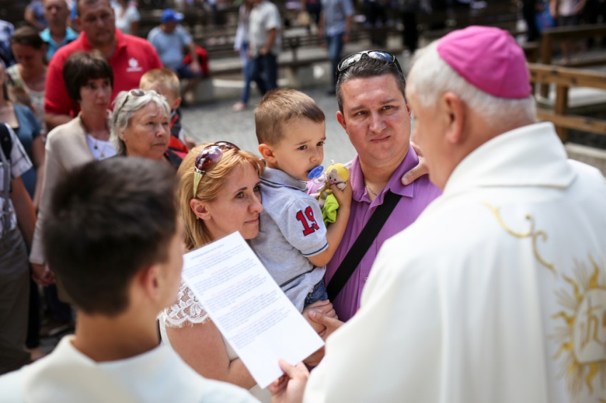 Jó látni, hogy akik tavaly még gyermekért jöttek könyörögni, idén már hálát adhatnak a gyermekáldásért – köszöntötte a szentmise elején a zarándokokat Kálmán Peregrin, a kegyhely július végén elköszönő igazgatója.