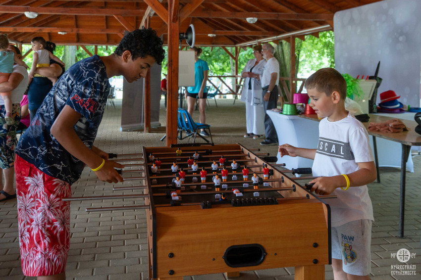 A szelfifal előtt is sokan megfordultak, hogy vicces karaktereknek öltözve vidám fotókat készítsenek a pillanatról. A népi játékok, ügyességi, horgászós, célbadobós játékok mellett meg-megálltak a gyermekek, vagy épp csocsóval, tollassal, röplabdával, focival fárasztották egymást és a nevelőket, munkatársakat.