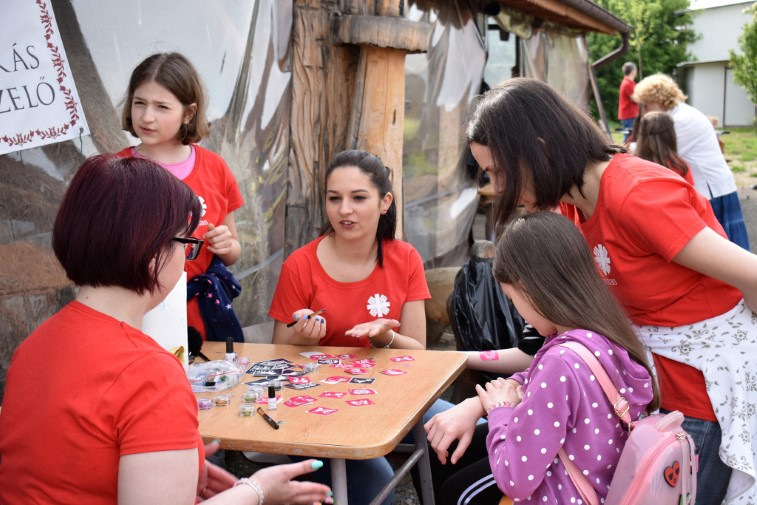 „Fiatalok vagyunk, időnk van, segíteni nagyon szeretünk, ezért örömmel vállaltuk, hogy az arcfestést mi végezzük a mai gyereknapon” – mondta a rendszeresen önkénteskedő Andrea.