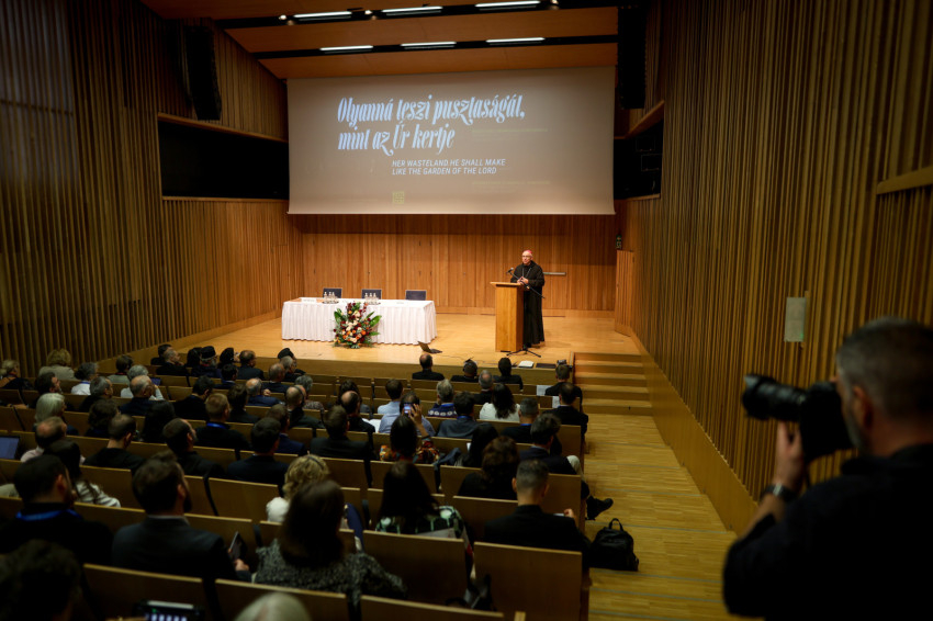Hortobágyi T. Cirill OSB pannonhalmi főapát házigazdaként köszöntötte a megjelenteket. A konferencia témáját ismertetve személyes példát hozott: a bencés közösség nagy munkával hozta rendbe a pannonhalmi arborétumot, ami érzékeltette számára, mit jelent egy talpalatnyi hely mindig veszélyeztetett szépségéért dolgozni. Rámutatott, hogy a kert egyszerre szimbolizálja a teremtés szépségét és törékenységét, amelyért felelősek vagyunk. A Paradicsomkert képe éles ellentétben áll napjaink valóságával, ahol a klímaváltozás, a háborúk, a migráció, a politikai megosztottság és társadalmi feszültségek az „ősbűn” következményeként súlyosbodnak.
