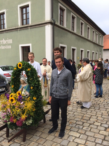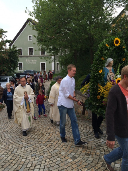 Augusztus 15-én a bajor erdő dombjai között meghúzódó Falkenstein is díszruhát öltött: a menyecskék, a kislányok, az asszonyok, de a férfiak is bajor népviseletben kísérték körmenetben a Szűzanya felékesített szobrát, amelyet a szentmise alatt a szentélyben helyeztek el. A szertartást követően pedig bárki vihetett haza a koszorúba vagy csokorba kötött jó illatú virágokból, gyógynövényekből. Nem kis öröm részt venni egy nehéz dogma – Mária mennybevitele – egyszerű, népi értelmezésének, természetes ünneplésének eseményében ott, ahol a katolikus hit párosul a természetbe oltott kinyilatkoztatás felfedezésével.