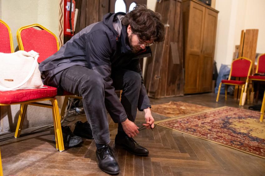 Viktor felveszi az „orgonálós” cipőjét. Egyet akkor vett, amikor 2017-ben idekerült kántornak, de annak tavaly kilyukadt a talpa. A mostanin is van már bemélyedés, a pedálok ennek a talpán is otthagyták a nyomukat.