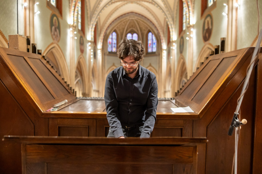Az éjféli szentmise után van egy közös koccintás a sekrestyében a munkatársakkal, így jó, ha három órát alszik Viktor, mert másnap reggel fél nyolckor megint ő orgonál. Év közben szombaton este hatkor ő kísér, majd vasárnap reggel fél nyolckor és kilenckor is, utána a két délelőtti misén Tamás. Ha viszont a fél tizenegyes zenekari misén van orgonakíséretes darab, akkor azt ő játssza. Este hatra visszamegy a templomba, a fél nyolcas pedig gitáros mise. És így van ez karácsonykor is.