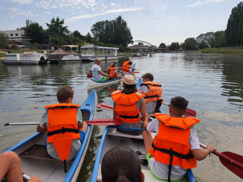 Mindeközben az alsósok a Füles Bástya terrárium házba látogattak el, ahol Dél-Amerika élővilágába nyerhettek betekintést, megismerkedhettek néhány különleges, barátságos fajjal, kézbe is foghatták őket. A felsősök a győri Mobilis Látogatóközpontba mentek, ahol felfedezhették a természet erőit, amelyek jelen vannak mindennapjainkban, és az elméleti ismereteket a gyakorlati kísérletezéssel ötvözték. Az ificsapat a győri bencések pinnyédi csónakházából indulva izgalmas kenutúrán vett részt.