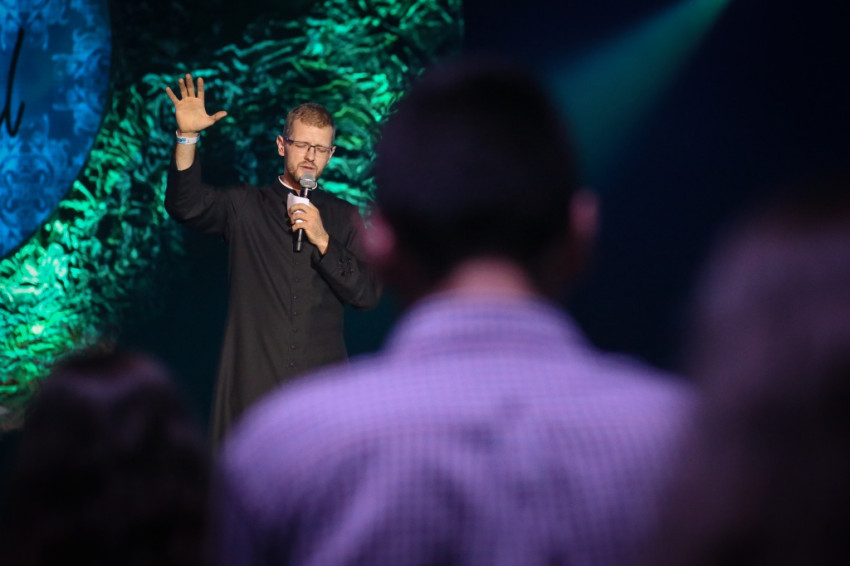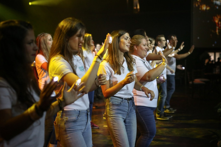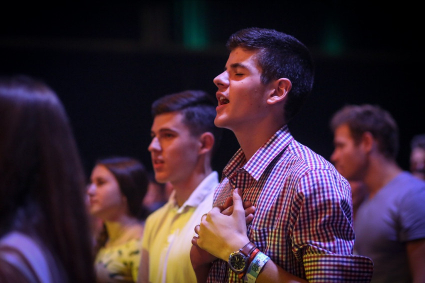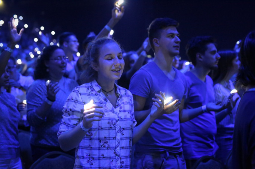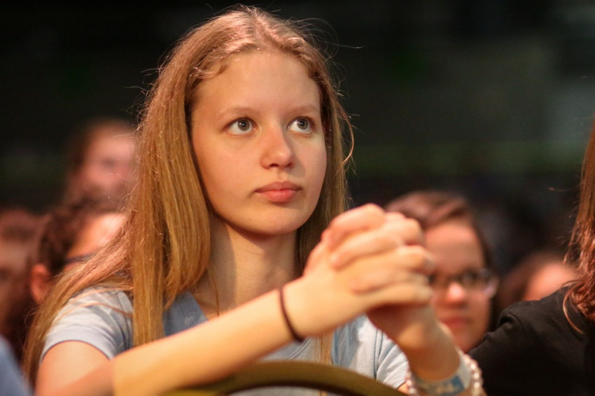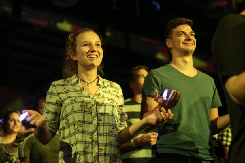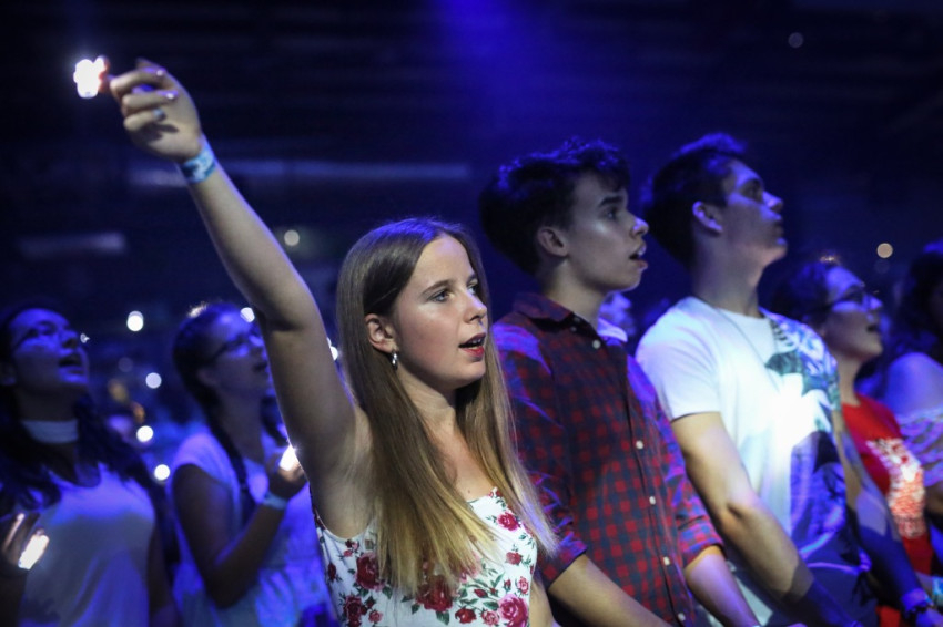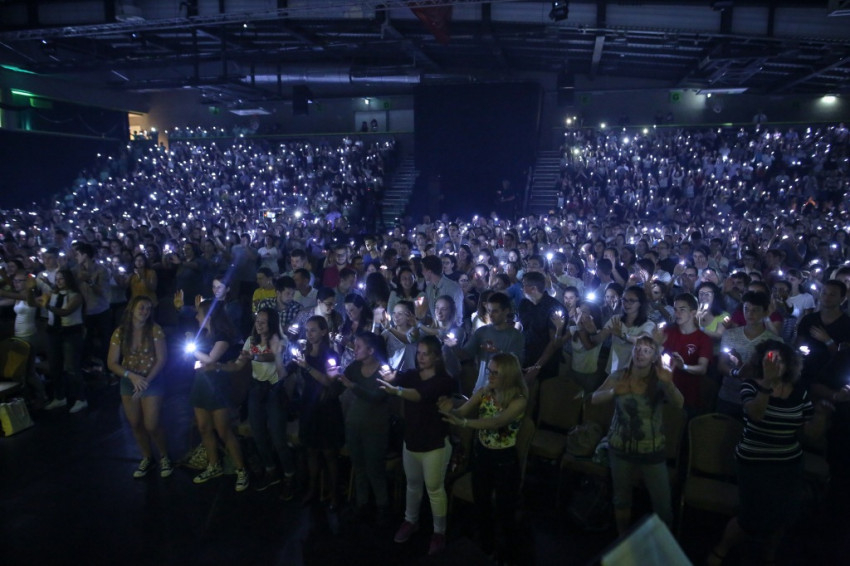 A budapesti sportközpont rendezvénytermében sötét van, apró szentjánosbogarakként világítanak az ujjakra húzott lámpácskák (LED Finger Lights – a szerk.). Dicsőítés zajlik, szól a zene, a tömeg énekel. Fiatalok, nagy többségben gimnazisták, akiket a leginkább hiányolunk az Egyház életéből. Jöttek az egész országból és a határon túlról is, több mint kétezren.