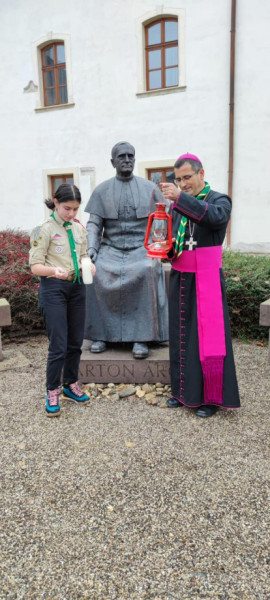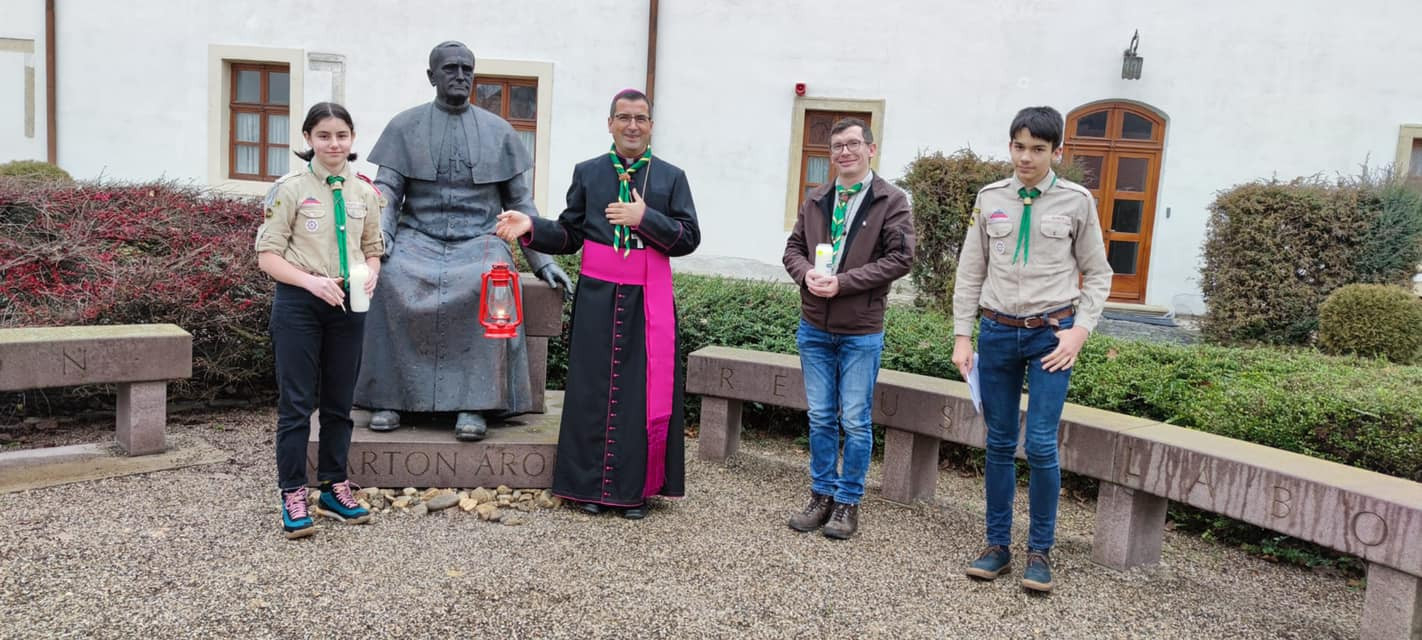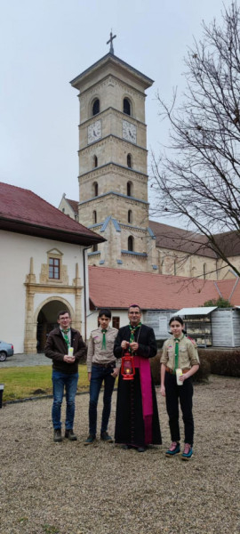 Gyulafehérvárra idén is megérkezett a betlehemi békeláng, amelyet Borka Botond cserkészvezető két cserkésszel együtt adott át Kerekes László segédpüspöknek – tájékoztat a Gyulafehérvári Római Katolikus Érsekség Facebook-oldala.