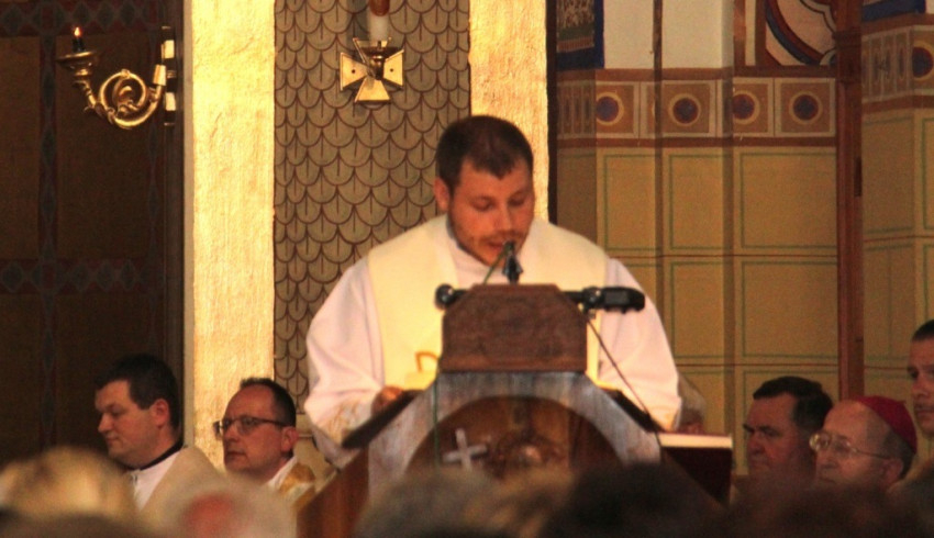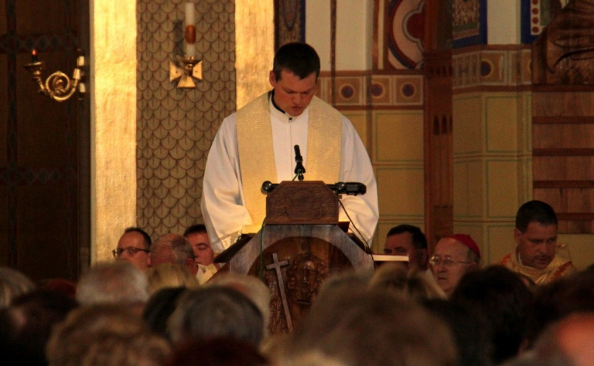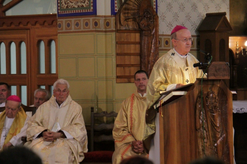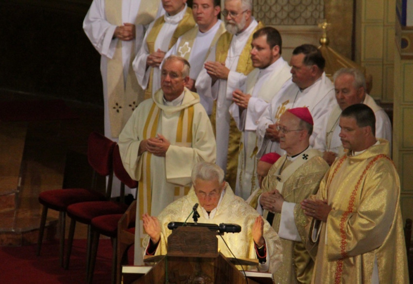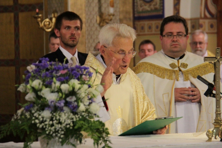 Az ünnepi szentmise keretében Márfi Gyula érsek mondott szentbeszédet, felidézve az ünnepelt életútját. Mint elmondta, az ember lelkét szentelésének évfordulóján eltölti a hála mindazokért az ajándékokért, amiket Isten megadott, mindazokért az eredményekért, amit sikerült elérni, de különösképpen azért, hogy megadta az állhatatosság kegyelmét. Ez az állhatatosság segítette át a hatvan év szolgálaton, jóban-rosszban, sikerben és balszerencsében, örömben és bánatban. A papi hivatáshoz állhatatosság szükséges, nem lehet a pályáról letérni anélkül, hogy magunknak vagy másoknak sérüléseket ne okoznánk. Végül Isten áldását kérte életére és további munkájára, hiszen vannak még imák, amiket el kell mondania, vannak még feladatok, amiket el kell végeznie. Van még keresztje, amit hordoznia kell. Vannak még emberek, akiknek a lelkében fel kell ébresztenie a kegyelmet, amely a püspök szentelése folytán benne él.