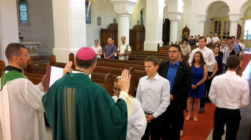 Június 30-án este a Jézus Szíve-plébániatemplomban gyűltek össze a diploma előtt álló medikusok, mintegy ötvenen. Udvardy György pécsi megyéspüspök köszöntőjében kiemelte, a jelenlévők a bizonytalan jövőbe indulnak, de Isten bizonyossága elkíséri őket.