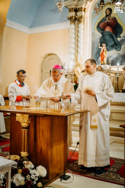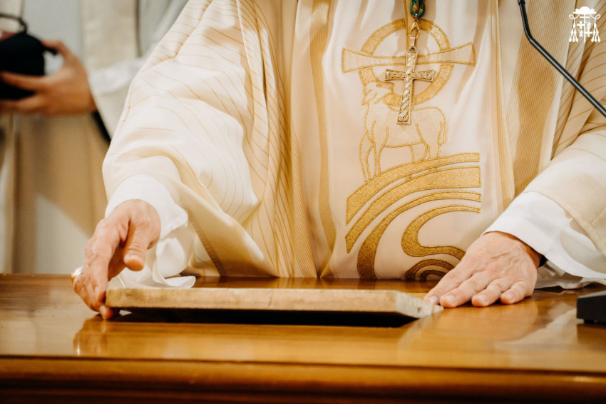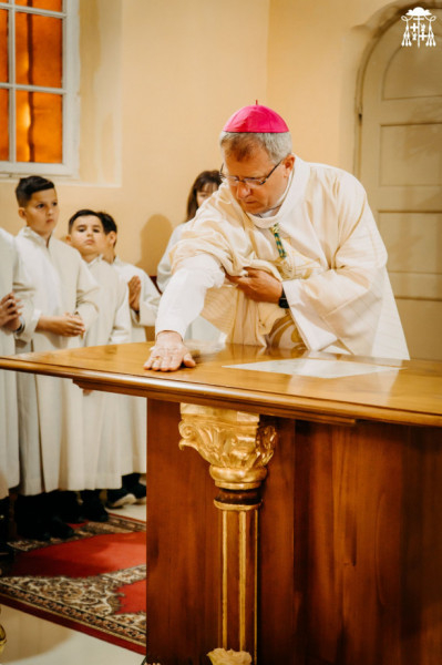 A főpásztor kiemelte, a templom központi helye az áldozati oltár, amely általában az előírásoknak megfelelően vértanúk ereklyéit is magába foglalja. A megszentelés során elhelyezik az ereklyét, és krizmával kenik meg az oltárt.