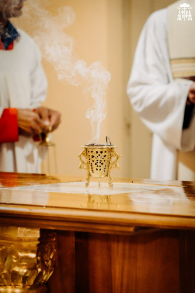 „Megható momentum, amikor az oltárra tömjént helyezünk: a tömjénfüst az Isten előtt bemutatott kedves áldozat jele, kifejezése” – fogalmazott Böcskei László püspök, hozzátéve: mindezek a hívőket akarják közelebb vinni Istenhez, Isten jelenlétéhez és cselekvéséhez.