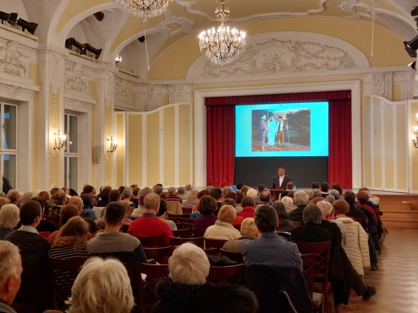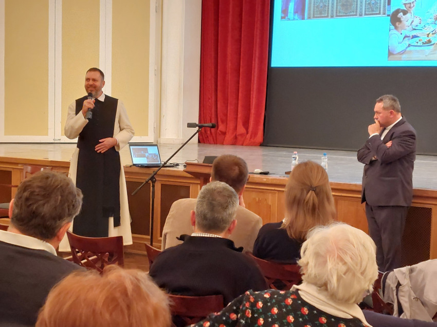 A budai ciszterci Szent Imre-plébánia idén ünnepli alapításának századik évfordulóját, az esztendő során pedig a megszokottnál is több programmal készül a közösség. Az est moderátora, Süveges Gergő az előadás megkezdése előtt arra buzdította a dísztermet megtöltő hallgatóságot, hogy minél több eseményen vegyenek részt, és kapcsolódjanak be a „fénygyűjtő” játékba.