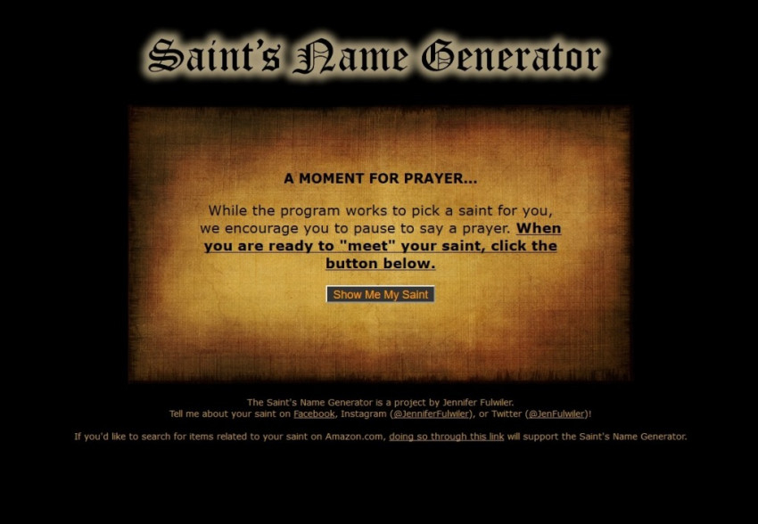 2. A következő felület arra kér, amíg a gép dolgozik, imádkozzunk egy kicsit, majd ha úgy érezzük, készen állunk a szentünkkel való találkozásra, klikkeljünk a Show Me My Saint! (Mutasd meg a szentem!) feliratra.