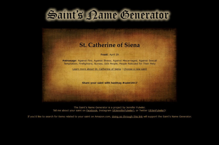 Az angol nyelvterületen élő katolikusok szinte biztosan újra belefutottak az elmúlt hetekben a „szentgenerátorba”, melyet Jennifer Fulwiler író, rádiós műsorvezető álmodott meg néhány évvel ezelőtt, és amely a „szenthúzás” egyes közösségekben népszerű újévi szokását helyettesítheti.