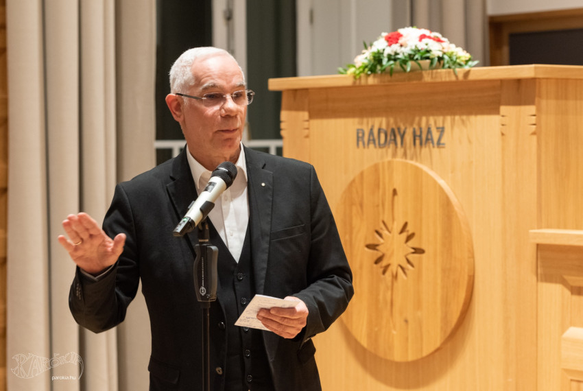 Az eseményen Balog Zoltán dunamelléki püspök, a Magyarországi Református Egyház Zsinatának lelkészi elnöke mondott köszöntőt. Az 1945-ben, egy németországi koncentrációs táborban elhunyt Dietrich Bonhoeffer evangélikus lelkészt idézte, aki szerint „az Egyházban akkor kezdődik el a romlás, amikor nem azt kérdezik, hogy mit mondjunk, hanem azt, hogy hogyan”. Ennek kapcsán kifejtette: elődje és barátja sosem áldozza fel a „mit” kérdését a „hogyanért”. Ez a „mit” Bonhoeffer szerint pedig nem más, mint hogy kicsoda számunkra Jézus Krisztus.